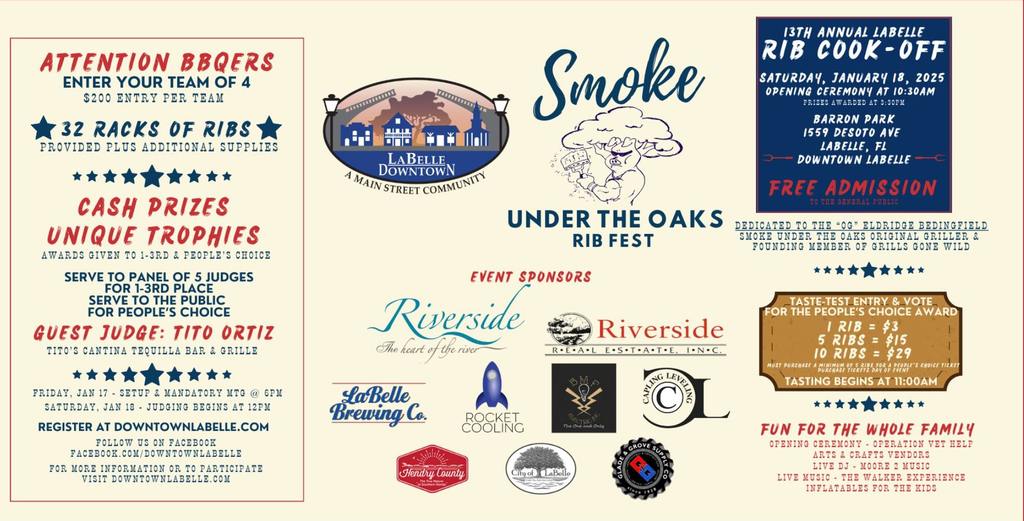 Celebrate the 13th year of LDRC’s Annual Smoke Under the Oaks Rib Fest! It all happens on Saturday, January 18, 2025 in Barron Park. We want you to be judgy! Taste all the ribs to pick your favorite to see which team gets crowned the People’s Choice! Ribs & Dinners are available beginning at 11am through 4pm. The 13th Annual Smoke Under the Oaks Winners will be announced by 3:30pm. Come early for the Opening Ceremony presented by Operation Vet Help! Parking is available on Park Ave and Lee Street. Bring the kids for bounce house fun and games! Find out more on our website